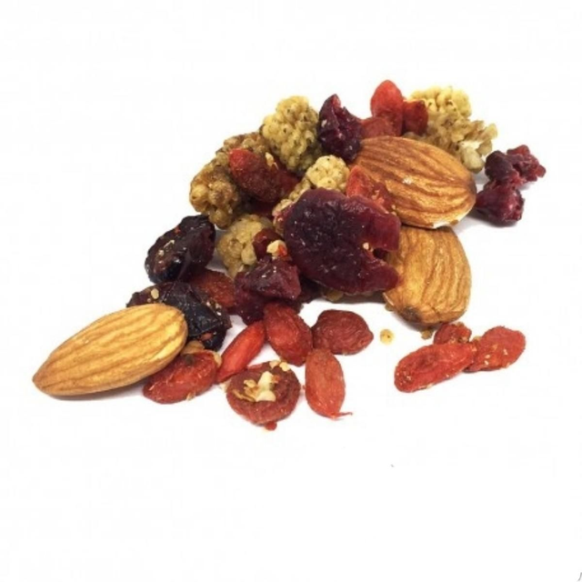 Mûres blanches, baies de goji,cranberries,amandes